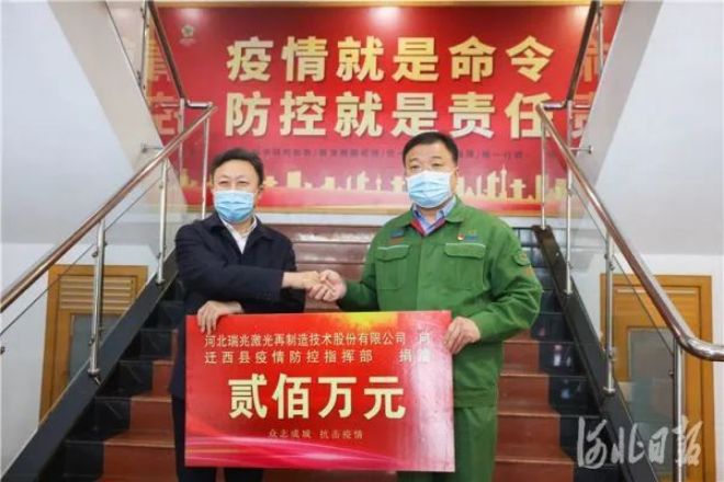 3月22日上午,河北瑞兆激光再制造技術股份有限公司黨委書記、董事長韓宏升偕全體員工,通過家鄉遷西縣紅十字會向全縣疫情防控指揮部捐款200萬元。