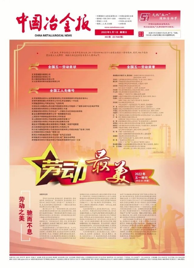 值此第132個(gè)“五一”國際勞動(dòng)節(jié)之際,我們特向奮戰(zhàn)在鋼鐵戰(zhàn)線的勞動(dòng)者們致以最誠摯的問候,向鋼鐵行業(yè)獲得全國五一勞動(dòng)獎(jiǎng)狀和被評(píng)為全國工人先鋒號(hào)的先進(jìn)集體、獲得全國五一勞動(dòng)獎(jiǎng)?wù)碌南冗M(jìn)模范人物獻(xiàn)上祝賀和深深的敬意!