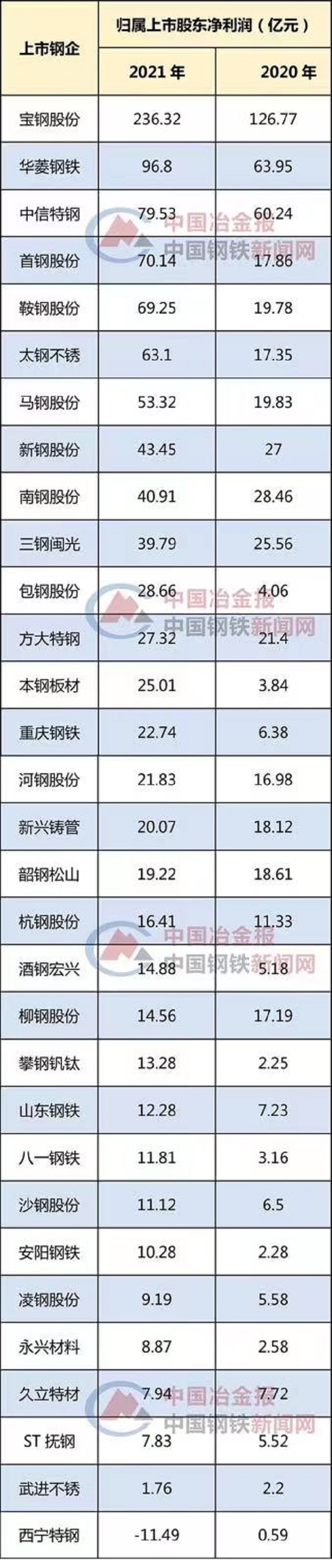 2021年上市鋼企利潤榜、營收榜、高管薪酬榜等出爐
