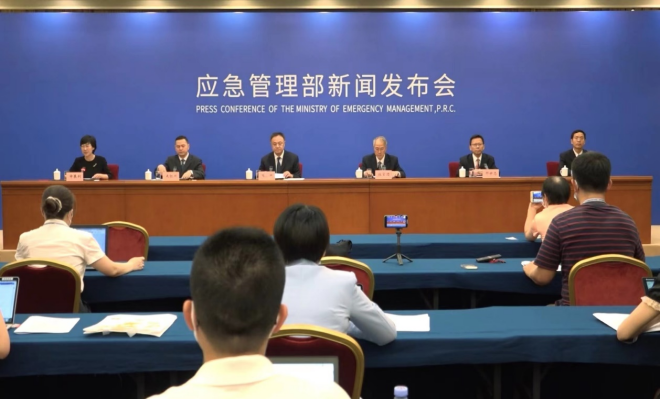 圖為7月21日10時(shí)應(yīng)急管理部7月份例行新聞發(fā)布會(huì)現(xiàn)場。