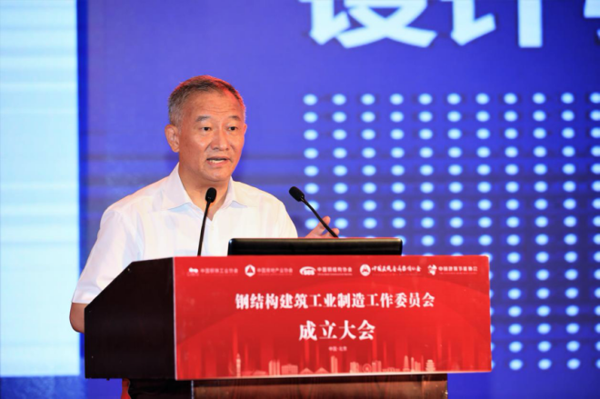 陳宜明在致辭中首先對委員會的成立表示祝賀。他認為,委員會的成立本質上是鋼鐵業和建筑業的結合,這兩個行業本就是“骨肉關系”,并且雙方有非常友好的合作歷史。他表示,在以往的發展過程當中,針對鋼結構的特點,我們堅持先公共建筑后住宅的發展路徑,但是技術發展到今天,同時還要積極發展鋼結構住宅。按照國家統計局發布的數據,去年全國住宅新開工面積約14.7億平方米,在這個量當中,鋼結構住宅占的比例還不高,發展空間還很大。發展鋼結構建筑是在積極貫徹落實國家“十三五”期間提出的“藏鋼于建筑”戰略目標,以及2016年印發的《國務院辦公廳關于大力發展裝配式建筑的指導意見》的具體任務和要求。他希望,未來依托委員會,鋼結構建筑的發展能夠堅持簡潔銜接、開發配套、建立體系(技術體系、材料體系和標準規范體系)、提高品質4個方面,在“雙碳”背景下達到一個更好的發展水平。