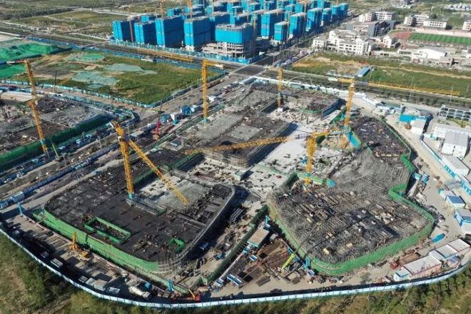 9月7日拍攝的雄安新區啟動區中國星網雄安新區總部大樓建設施工現場(無人機照片)。新華社記者 朱旭東 攝