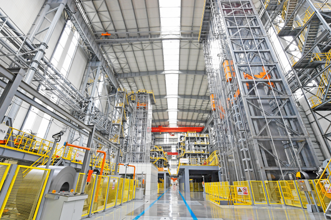 河鋼全面實施“鋼鐵向材料、制造向服務”改革創新,駛出產業升級、產品高端的高質量發展“加速 度”。圖為河鋼高強汽車板生產線。