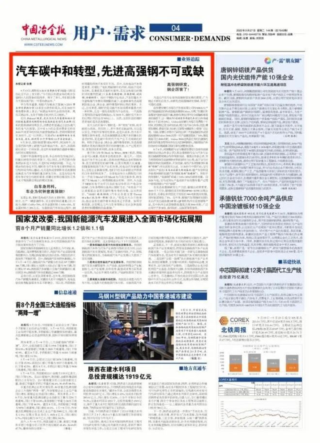 為適應(yīng)汽車行業(yè)綠色低碳轉(zhuǎn)型發(fā)展的需要,廣大鋼企不斷優(yōu)化技術(shù),深耕先進高強鋼研發(fā)領(lǐng)域,取得了可喜的成績。