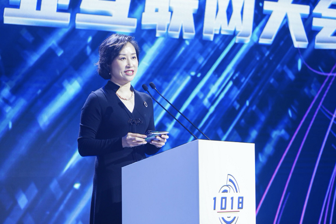圖為歐冶云商高級副總裁張佩璇主持上午的會議
