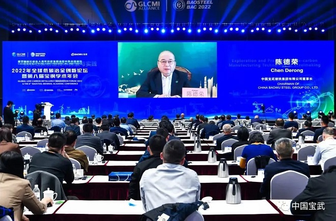 11月16日下午,金色爐臺·寶武鋼鐵會博中心彩旗招展,以“重塑鋼鐵行業(yè)在人類可持續(xù)發(fā)展進(jìn)程中的關(guān)鍵地位”為主題的2022年全球低碳冶金創(chuàng)新論壇暨第八屆寶鋼學(xué)術(shù)年會在這里舉行。來自中國鋼鐵工業(yè)協(xié)會、中國工程院、世界鋼鐵協(xié)會,以及國內(nèi)外知名鋼鐵企業(yè)、研發(fā)設(shè)計(jì)單位、高等院校、低碳冶金產(chǎn)業(yè)鏈上下游合作伙伴單位的專家學(xué)者“云”聚一堂,聚焦當(dāng)前鋼鐵產(chǎn)業(yè)低碳冶金工藝變革、清潔能源高效利用以及綠色發(fā)展中的熱點(diǎn)問題展開交流,分享行業(yè)技術(shù)創(chuàng)新最新實(shí)踐和成果。在大會主會場會議上,寶武黨委書記、董事長陳德榮致辭并以“鋼鐵低碳制造技術(shù)探索與實(shí)踐”為題作主旨演講。中國鋼鐵工業(yè)協(xié)會執(zhí)行會長何文波、中國工程院院士干勇、世界鋼鐵協(xié)會總干事艾德溫·巴松、中國礦產(chǎn)資源集團(tuán)總經(jīng)理郭斌等出席會議。寶武總經(jīng)理、黨委副書記胡望明主持會議。