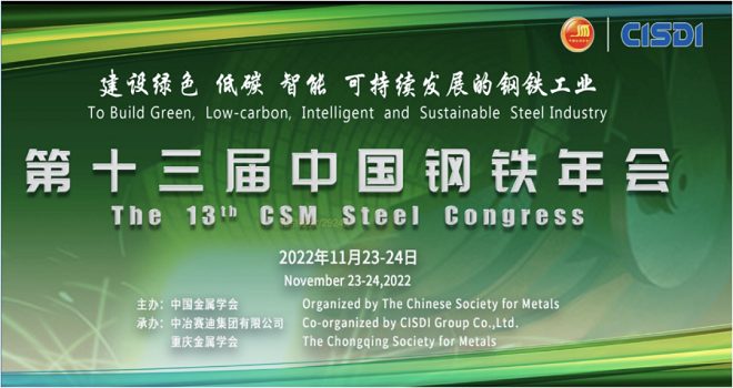 11月23日上午,由中國金屬學會主辦、中冶賽迪集團有限公司和重慶金屬學會承辦的第十三屆中國鋼鐵年會開幕。受疫情影響,本次會議采用線上方式進行,會期共2天。與會人士圍繞“建設綠色、低碳、智能、可持續發展的鋼鐵工業”主題,就冶金和材料理論、工藝、產品、應用、智能化、綠色化、低碳發展等內容展開交流研討。