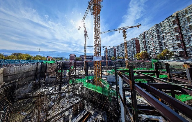 在國子郡二期項目施工現場,《中國冶金報》記者看到,與傳統建筑工地現場工人推車搬運水泥、充滿揚塵等景象不同,使用鋼結構建造地基的施工現場僅有幾名工人,主要通過大型機械吊裝鋼柱、鋼梁等來搭建地基。北京建誼國子郡3A項目經理劉福利特別介紹,他們使用的擁有專利設計的新型防屈曲鋼板剪力墻可以幫助鋼結構住宅起到很好的防震效果:在水平荷載(地震動)作用下,當結構產生層間變形時,鋼板墻先于梁柱構件進入塑性階段,鋼板墻耗能構件發生塑性變形來消耗輸入結構的能量,以保護主體結構免遭破壞。張鳴也介紹稱,國子郡二期項目按照設計可抵御8度的地震破壞烈度。