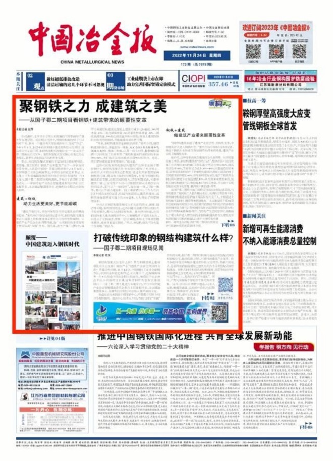 “鋼結構建筑加速了建筑產業社會性、結構性變革,中國建筑正式進入鋼鐵時代。”張鳴告訴《中國冶金報》記者,得益于鋼鐵行業快速發展給鋼結構帶來的機遇,建筑產業實現了顛覆性變革。