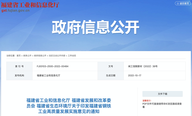 《福建省鋼鐵工業(yè)高質(zhì)量發(fā)展實施意見》