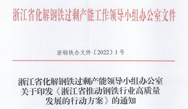《浙江省推動鋼鐵行業(yè)高質(zhì)量發(fā)展的行動方案》