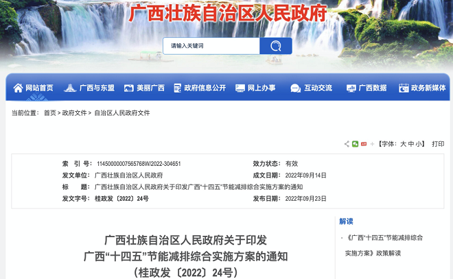 《廣西“十四五”節(jié)能減排綜合實施方案的通知》