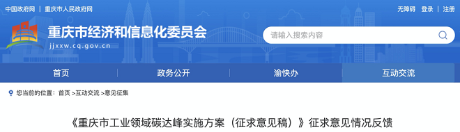 《重慶市工業(yè)領域碳達峰實施方案(征求意見稿)》