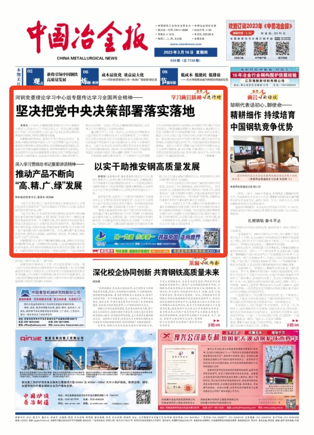 河鋼集團(tuán)黨委書記、董事長于勇主持會議并講話。他強(qiáng)調(diào),河鋼各級黨組織要深入學(xué)習(xí)宣傳貫徹習(xí)近平總書記重要講話精神和全國兩會精神,深刻理解推進(jìn)強(qiáng)國建設(shè)、民族復(fù)興的豐富內(nèi)涵和實(shí)踐要求,堅持和加強(qiáng)黨的全面領(lǐng)導(dǎo),堅決把黨中央各項(xiàng)決策部署落實(shí)落地,堅定不移推動高質(zhì)量發(fā)展,在強(qiáng)國建設(shè)、民族復(fù)興的新征程上強(qiáng)化責(zé)任擔(dān)當(dāng)、做出應(yīng)有貢獻(xiàn)。全國人大代表,河鋼集團(tuán)黨委副書記、總經(jīng)理王蘭玉專題傳達(dá)了全國兩會精神。