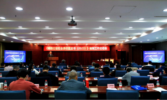 4月26日,《鋼鐵行業社會責任藍皮書(2023)》編制工作啟動會在中鋼國際廣場召開。會議總結了首部《鋼鐵行業社會責任藍皮書(2022)》發布的成效,對《鋼鐵行業社會責任藍皮書(2023)》編制工作提出了建議,介紹了項目進展及下一步工作安排。