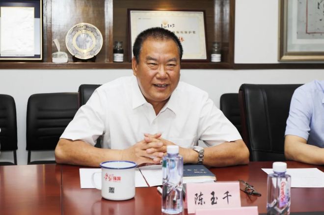 圖為陳玉千陪同袁斯浪參觀中國冶金報社