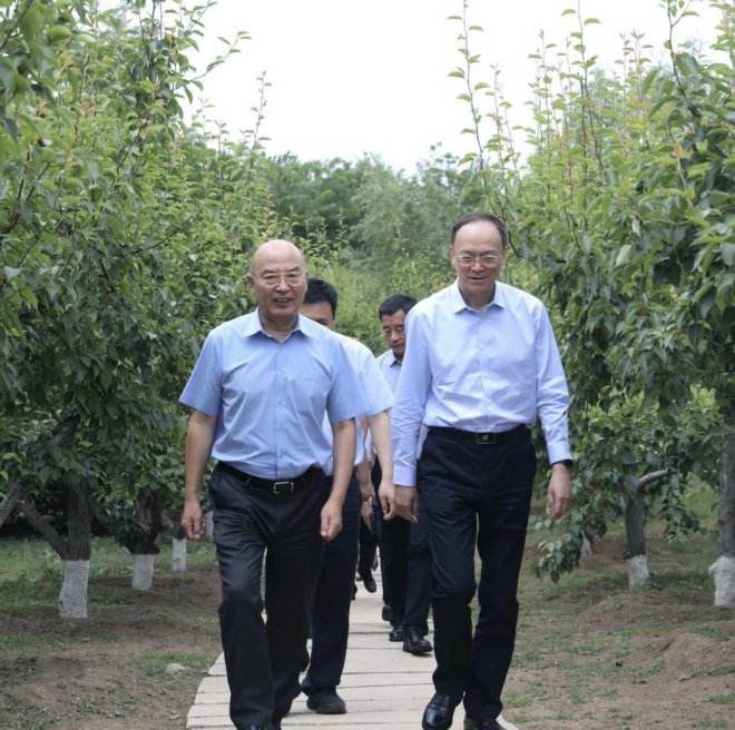 工作交流結束后,何文波一行同譚成旭一起,到鞍鋼礦業復墾生態園進行現場調研。