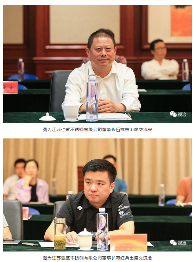 會議期間,與會代表前往江蘇“小陳故事”文化創意有限公司、江蘇星火特鋼有限公司調研,聽取了興化市不銹鋼行業協會秘書長沈培林關于戴南鎮不銹鋼行業發展情況的介紹。