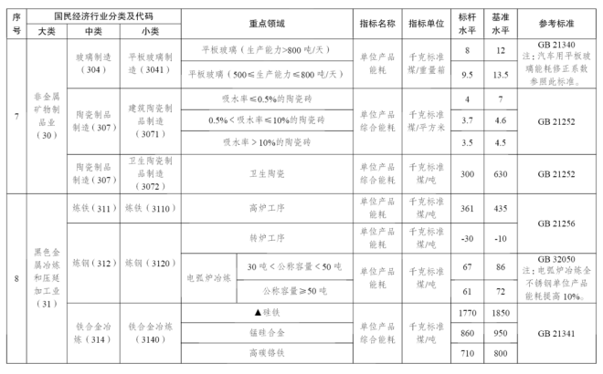通知提出,對此前明確的煉油、煤制焦炭、煤制甲醇、煤制烯烴、煤制乙二醇、燒堿、純堿、電石、乙烯、對二甲苯、黃磷、合成氨、磷酸一銨、磷酸二銨、水泥熟料、平板玻璃、建筑陶瓷、衛生陶瓷、煉鐵、煉鋼、鐵合金冶煉、銅冶煉、鉛冶煉、鋅冶煉、電解鋁等25個領域,原則上應在2025年底前完成技術改造或淘汰退出;對本次增加的乙二醇等11個領域,原則上應在2026年底前完成技術改造或淘汰退出。