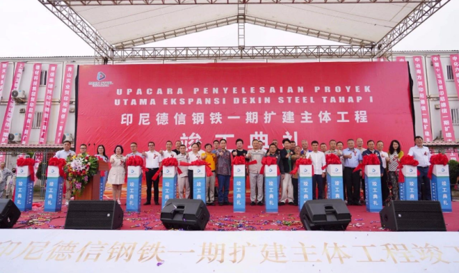 2023年9月19日,在印度尼西亞中蘇拉威西省莫羅瓦利工業園內,伴隨著中印尼文化融合的開場舞烘托出的熱烈氣氛,東南亞最大普碳鋼生產企業——印尼德信鋼鐵一期擴建主體工程竣工典禮拉開帷幕。