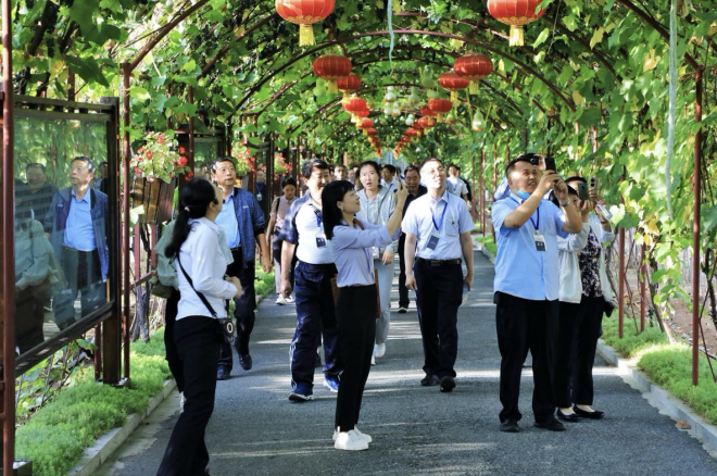 圖為參觀鞍鋼礦業(yè)復墾生態(tài)園
