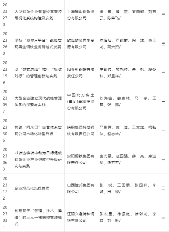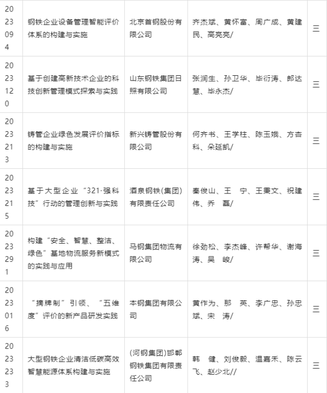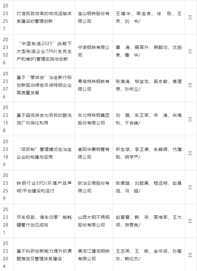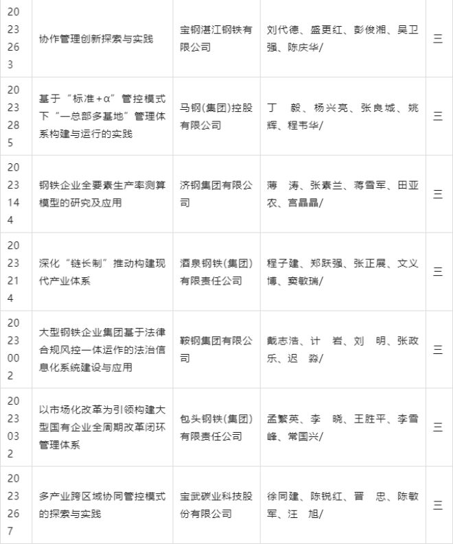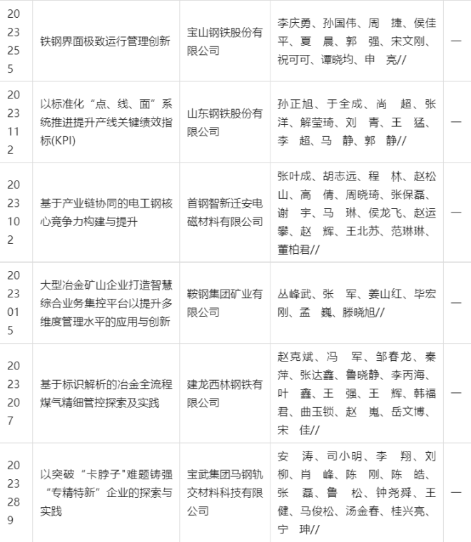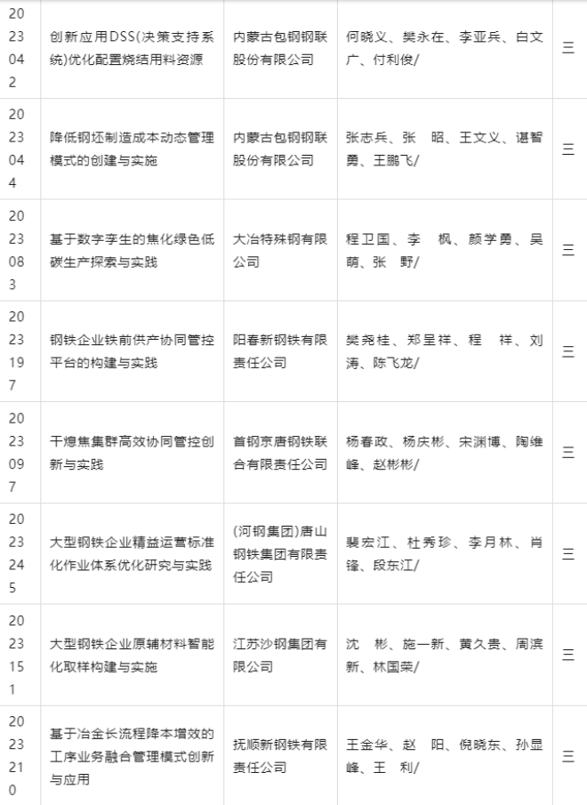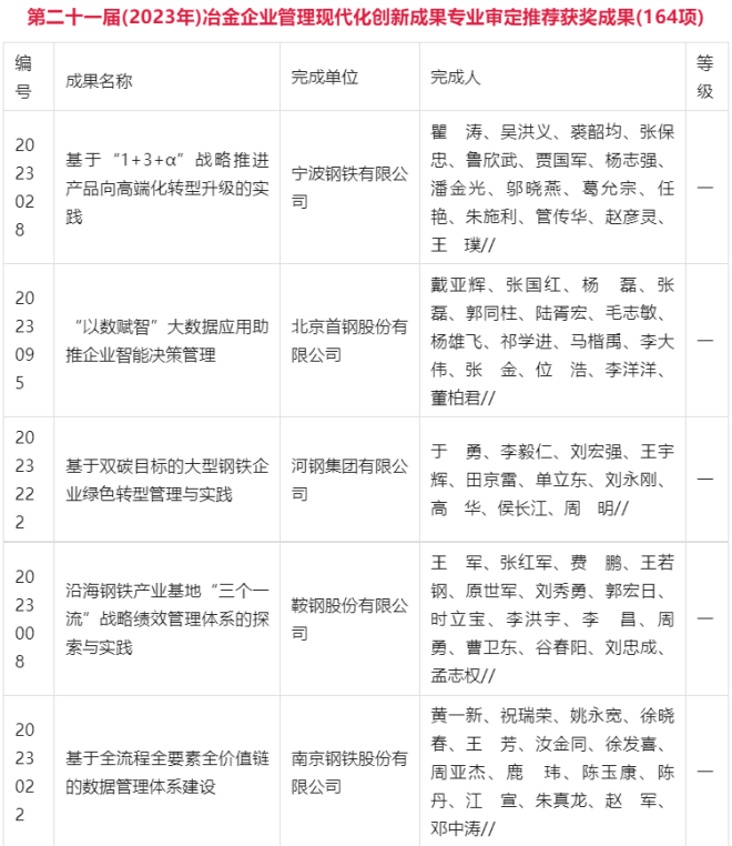 關(guān)于第二十一屆(2023年)冶金企業(yè)管理現(xiàn)代化創(chuàng)新成果專(zhuān)業(yè)審定推薦獲獎(jiǎng)成果公示的通知