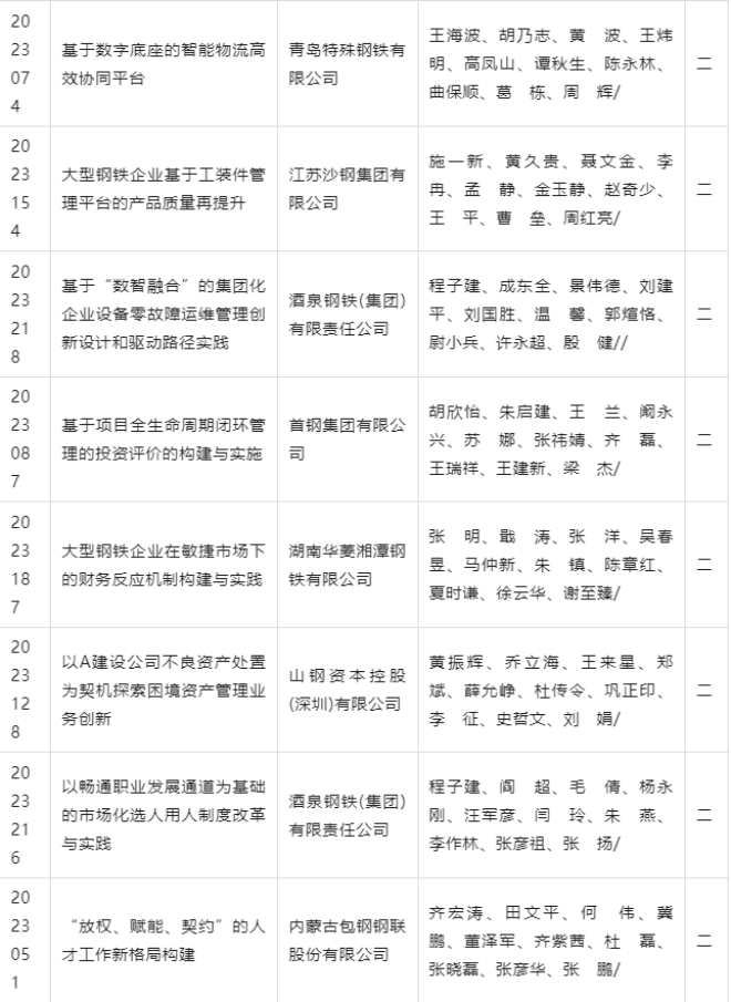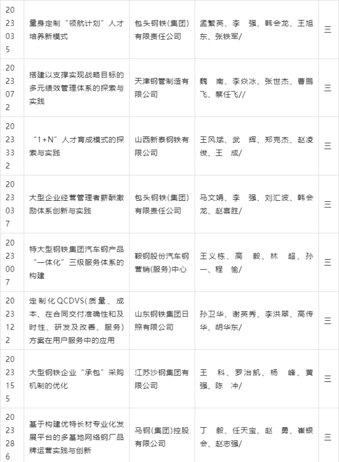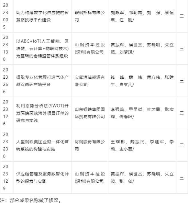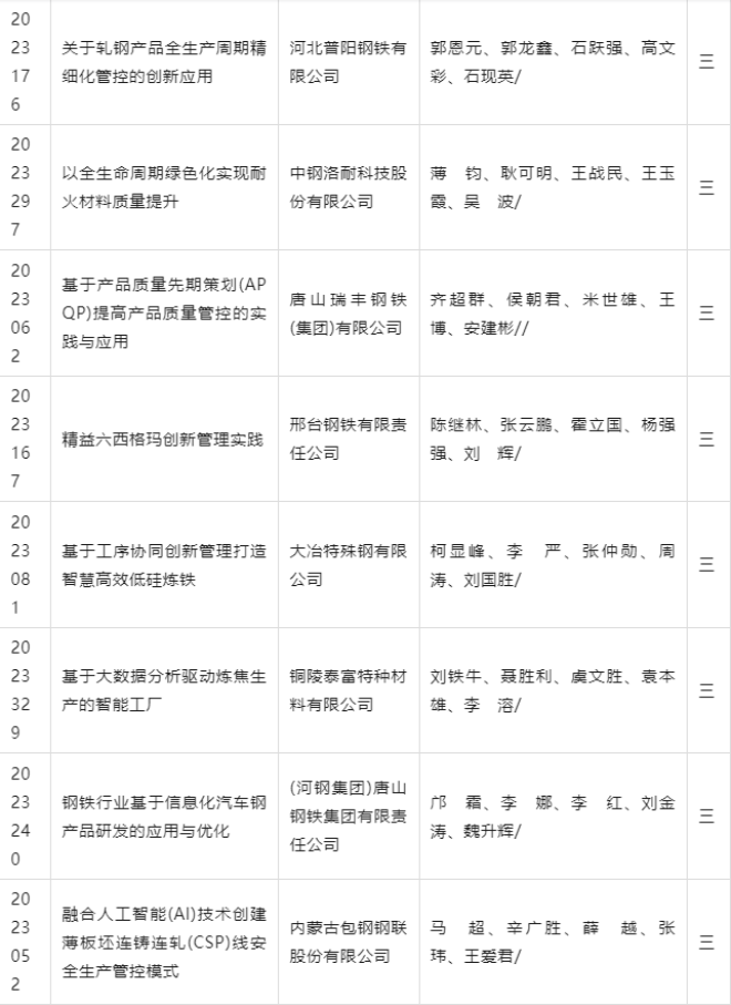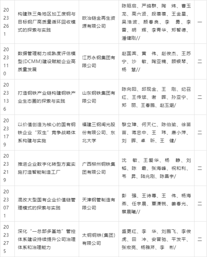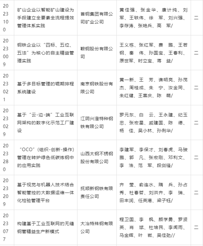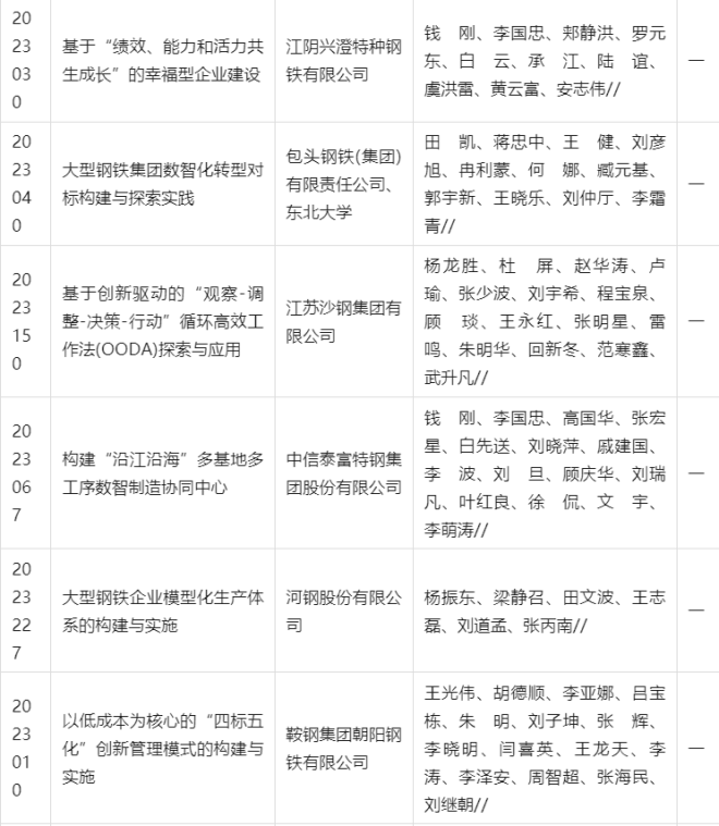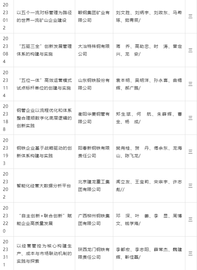 關(guān)于第二十一屆(2023年)冶金企業(yè)管理現(xiàn)代化創(chuàng)新成果專(zhuān)業(yè)審定推薦獲獎(jiǎng)成果公示的通知