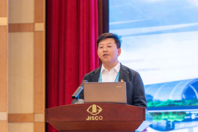 圖為李夢巖代表下一屆年會承辦單位(南鋼)作表態發言