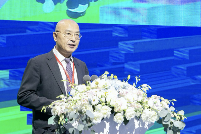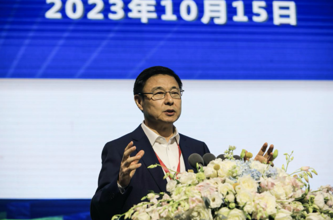 圖為寶武低碳冶金創新中心常務副主任毛曉明發布2023年低碳冶金創新基金項目指南
