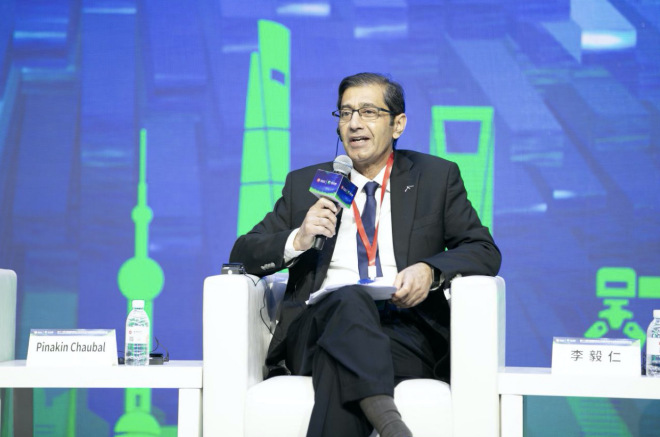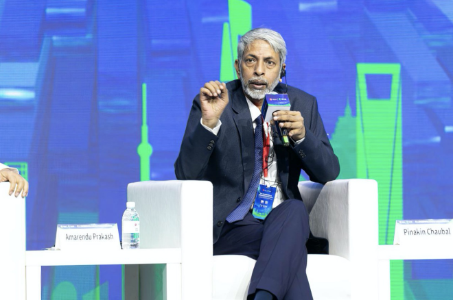 圖為阿馬倫杜·普拉卡什出席“在綠色轉型中謀求新發展”圓桌論壇