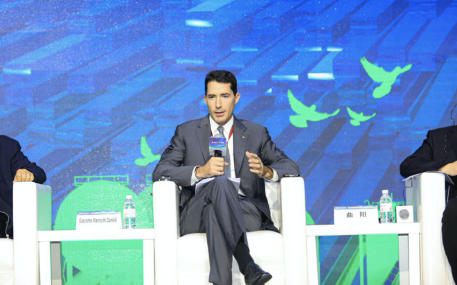 圖為賈科莫出席“鋼鐵綠色低碳轉型的技術路徑”圓桌論壇