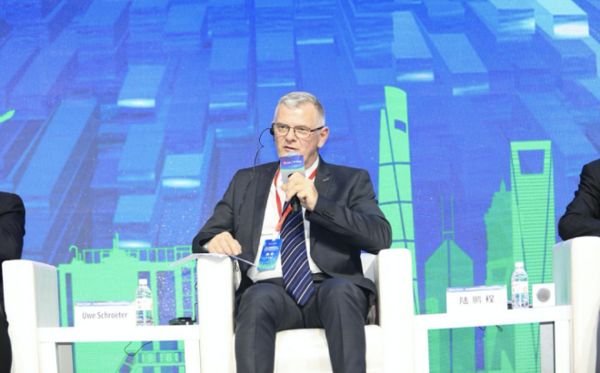 圖為施羅德出席“鋼鐵綠色低碳轉型的技術路徑”圓桌論壇