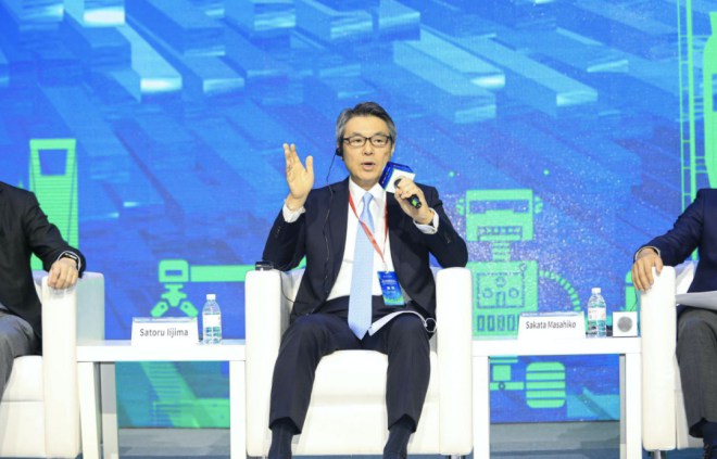 圖為飯島悟出席“鋼鐵綠色低碳轉型的技術路徑”圓桌論壇