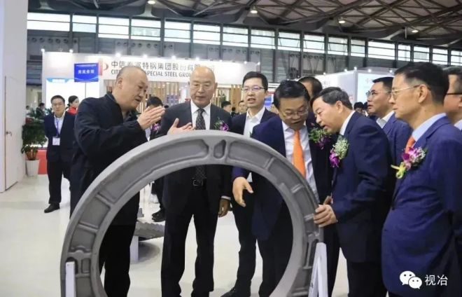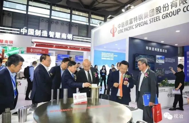 參加開(kāi)幕式的領(lǐng)導(dǎo)和嘉賓參觀中信泰富特鋼展臺(tái)
