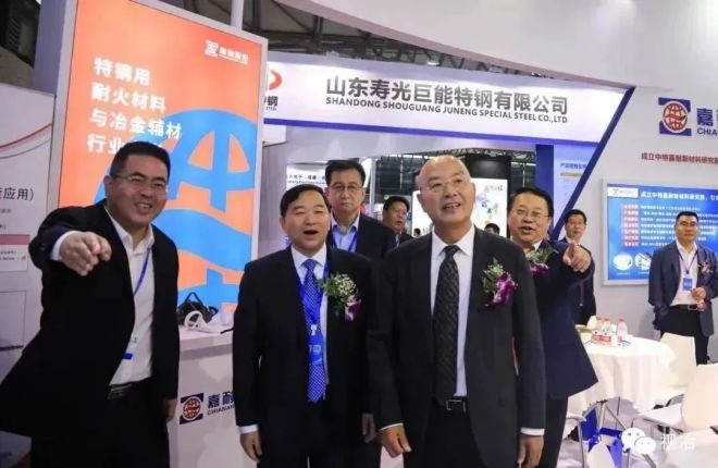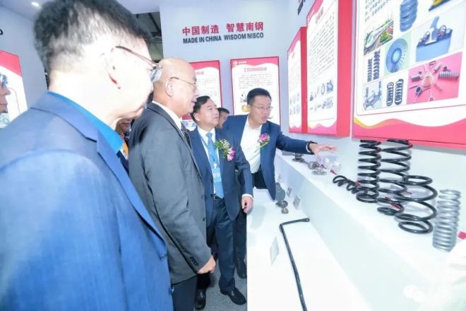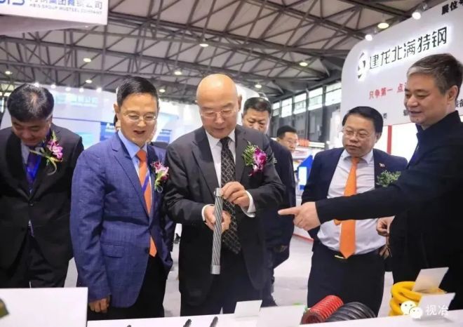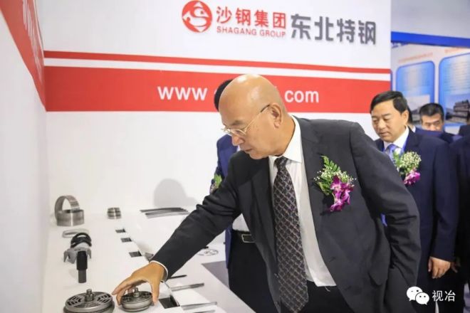 參加開(kāi)幕式的領(lǐng)導(dǎo)和嘉賓參觀沙鋼東北特鋼展臺(tái)