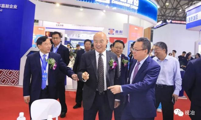 參加開(kāi)幕式的領(lǐng)導(dǎo)和嘉賓參觀嘉耐股份展臺(tái)