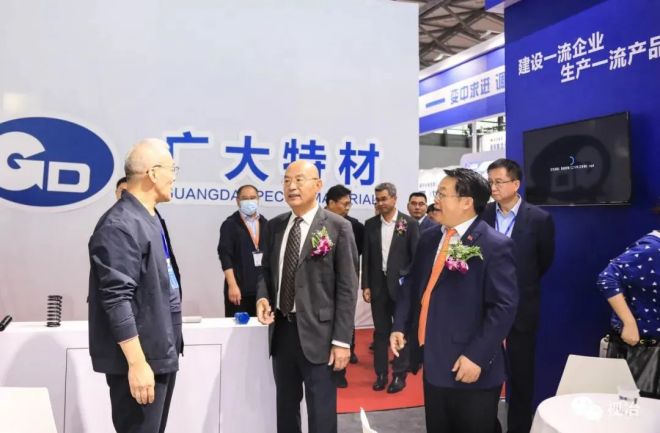 參加開(kāi)幕式的領(lǐng)導(dǎo)和嘉賓參觀廣大特材展臺(tái)