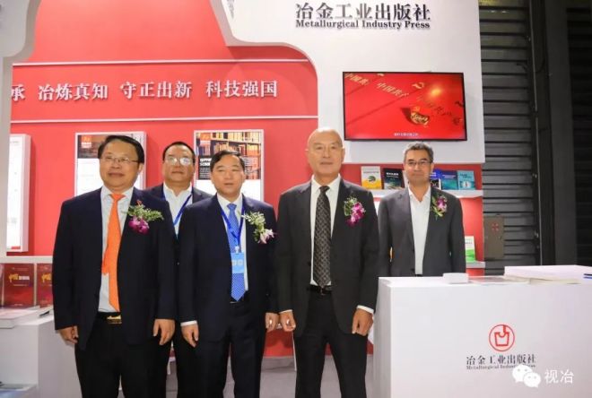 參加開(kāi)幕式的領(lǐng)導(dǎo)和嘉賓參觀冶金工業(yè)出版社展臺(tái)并合影