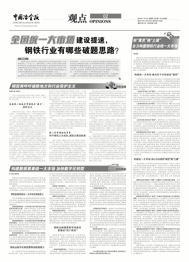 全國統(tǒng)一大市場建設對鋼鐵行業(yè)有著不同尋常的意義。本期特圍繞“全國統(tǒng)一大市場建設提速下鋼鐵行業(yè)的破題思路”這一話題展開探討。