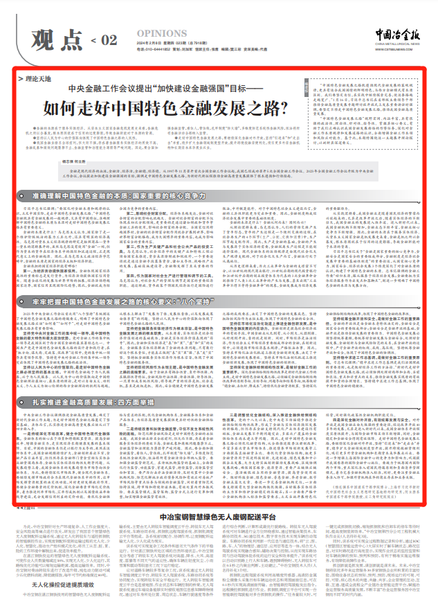 2023年中央金融工作會議首次用“八個堅持”系統(tǒng)闡述了中國特色金融發(fā)展之路的精髓要義,明確了中國特色金融發(fā)展之路應(yīng)該“如何看”“如何干”,對走好中國特色金融發(fā)展之路具有重要影響。