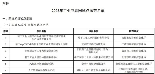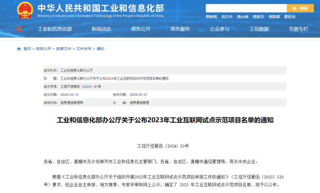 關于公布2023年工業(yè)互聯(lián)網(wǎng)試點示范項目名單的通知
