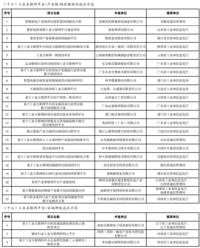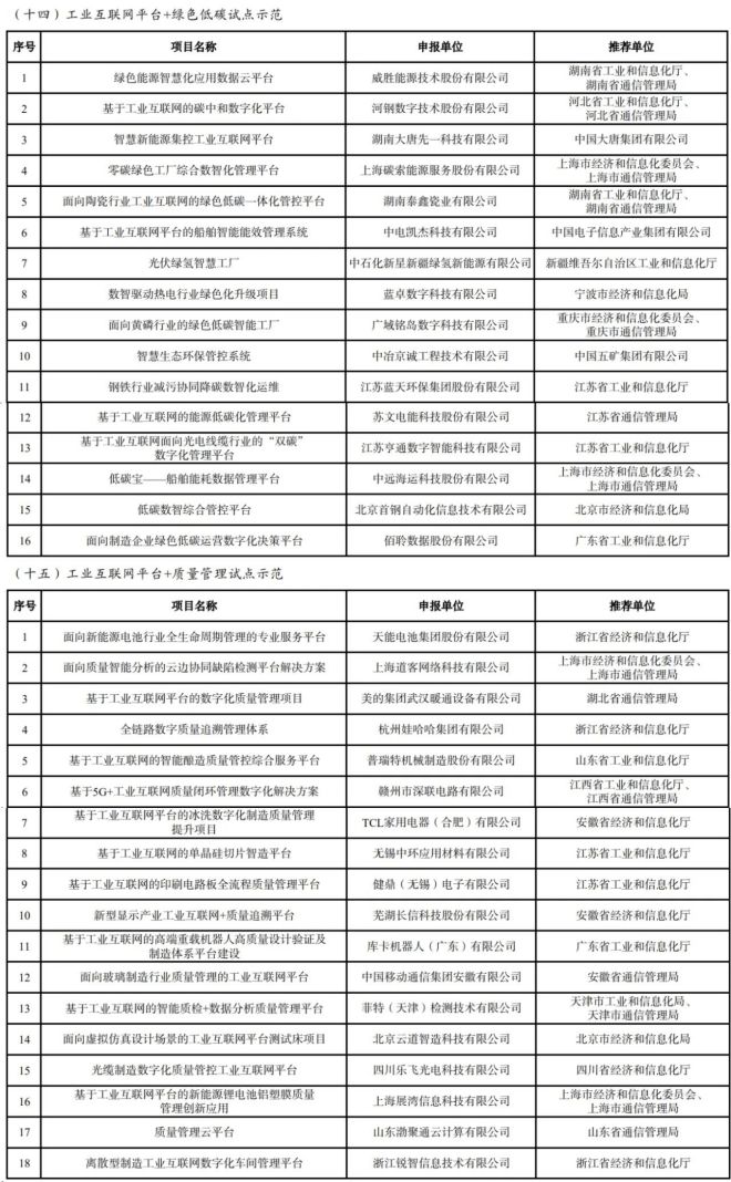 根據(jù)《工業(yè)和信息化部辦公廳關于組織開展2023年工業(yè)互聯(lián)網(wǎng)試點示范項目申報工作的通知》(工信廳信管函〔2023〕319號)要求,經(jīng)企業(yè)自主申報、地方推薦、專家評審和網(wǎng)上公示,確定了 2023 年工業(yè)互聯(lián)網(wǎng)試點示范項目名單,現(xiàn)予以公布。