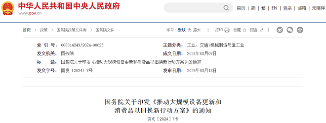 2024年《政府工作報告》提出,推動各類生產設備、服務設備更新和技術改造,鼓勵和推動消費品以舊換新。在十四屆全國人大二次會議經濟主題記者會上,相關部門負責人提出,設備更新初步估算是一個年規模5萬億元以上的巨大市場,汽車、家電更新換代創造萬億規模的市場空間。近日,國務院印發《推動大規模設備更新和消費品以舊換新行動方案》。企業將獲得哪些機會?咱老百姓將獲得哪些實惠?一起來看——