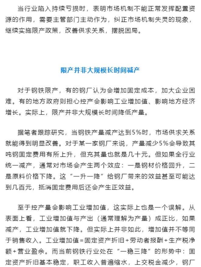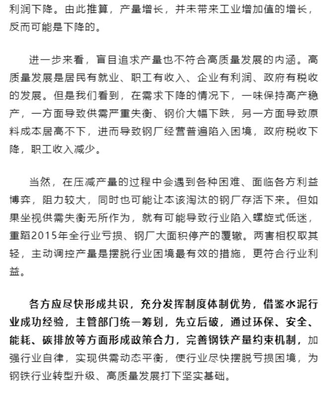 完善鋼鐵產(chǎn)量約束機(jī)制才是脫困之道