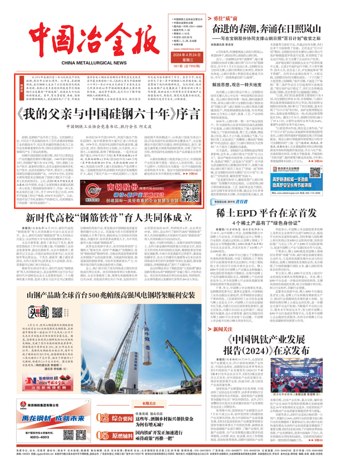 我深信,《我的父親與中國(guó)硅鋼六十年》一書的出版將受到硅鋼產(chǎn)業(yè)的廣泛認(rèn)可和歡迎,這本書將為我們?nèi)婵偨Y(jié)中國(guó)冷軋硅鋼的發(fā)展史提供寶貴經(jīng)驗(yàn),發(fā)揮一定的借鑒及幫助作用。同時(shí),我也對(duì)未來中國(guó)硅鋼產(chǎn)業(yè)的發(fā)展充滿期待。我相信,將有越來越多的技術(shù)專家在冷軋硅鋼領(lǐng)域繼續(xù)努力探索,并以百折不撓、奮發(fā)有為的精神,引領(lǐng)著硅鋼產(chǎn)業(yè)朝著高端化、智能化、綠色化發(fā)展目標(biāo)邁進(jìn)。