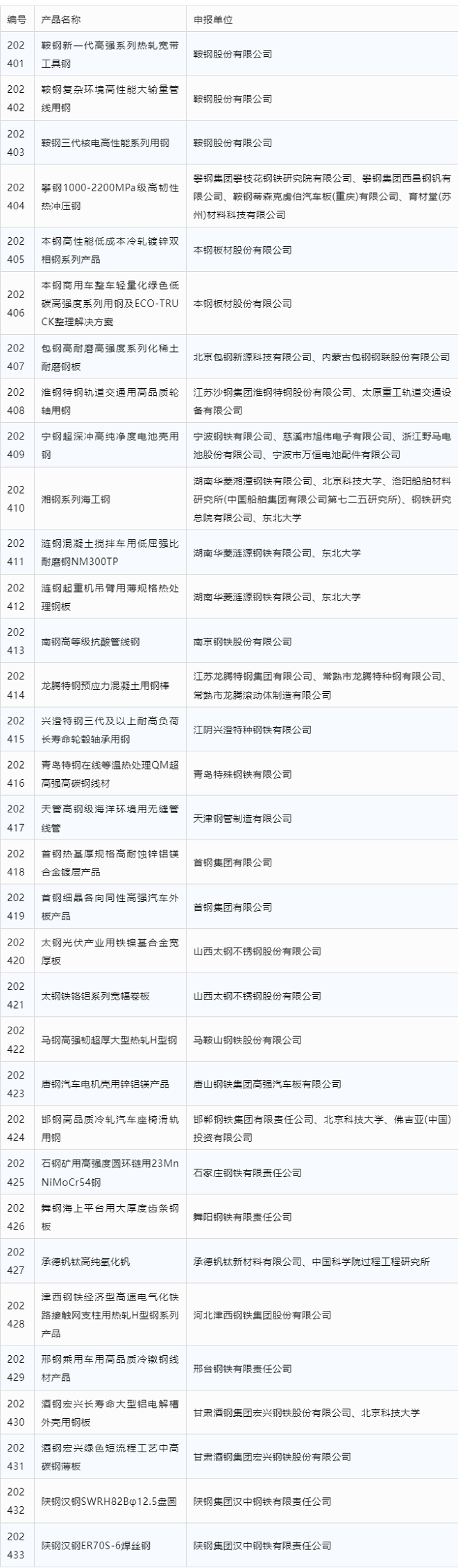 1.2024年度中國鋼鐵工業協會產品開發市場開拓獎申報產品名錄