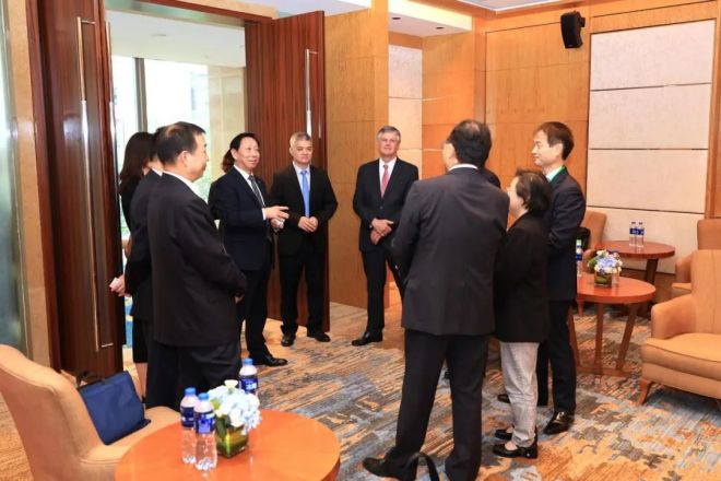 圖為9月2日在開幕主題大會期間,與會領導嘉賓熱烈交流。