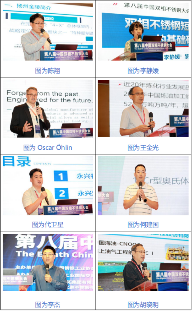 隨后,宋志剛、日本冶金工業株式會社特別技術顧問王昆、中國寶武太鋼技術中心正高級工程師李國平、國際鉬協會大中華區總代表Gaetano Ronchi、江來珠、上海期貨交易所商品一部代表楊尚青、招商局金陵公司技術中心船體室主任陳翔、北京科技大學材料學院副院長李靜媛、合邁瑞管材部門產品研發工程師Oscar ?hlin、中國石化工程建設有限公司技術總監王金光、永興特鋼技術工藝室主任代衛星、鋼研總院特鋼院何建國博士、振石集團東方特鋼技術中心副主任李杰、中海油原技術專家胡曉明、久立特材無縫管技術部副部長秦興文、蘭石換熱公司副總工程師朱海舟、中國寶武太鋼技術中心柳陽博士等17位專家圍繞國內外雙相不銹鋼在化工、石化、造船、核電、環保設備、橋梁工程、建筑等領域的最新研究、推廣應用等內容做主題報告,并為提問的參會代表答疑解惑。
