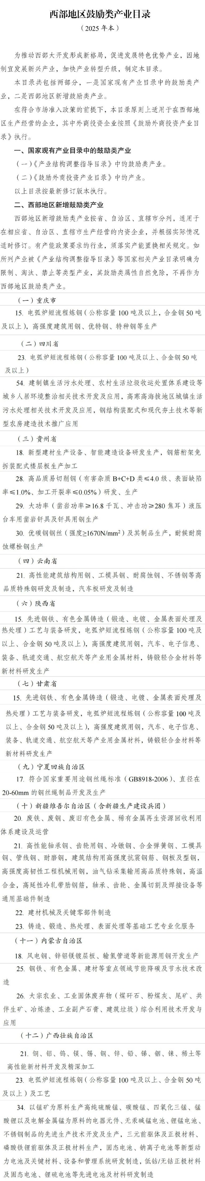 西部地區,鼓勵這些鋼鐵項目