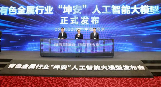 12月26日,由中國有色金屬工業協會和中鋁集團共同舉辦的有色金屬行業“坤安”人工智能大模型發布會在北京舉行。國家相關部委有關人員到會指導,中國工程院院士、中南大學校長、黨委副書記李建成,中國有色金屬工業協會黨委常委、常務副會長賈明星出席會議并致辭。中鋁集團黨組書記、董事長段向東出席會議并致辭,黨組副書記、總經理王石磊主持會議。